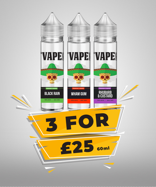 All vape liquids contain (PG) Propylene Glycol, (VG) Vegetable Glycerine and Food Grade Flavourings - Quantities are on product labels.